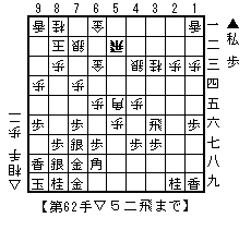この局面では、どう指せばよいかは分からないが、本譜の▲9五歩、△同歩、▲同香、△8六歩、▲9一香成、△同飛は明らかに先手暴発だった。