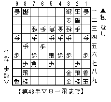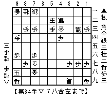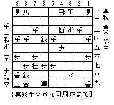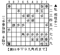 この局面では、どう指せばよいかは分からないが、本譜の▲9五歩、△同歩、▲同香、△8六歩、▲9一香成、△同飛は明らかに先手暴発だった。